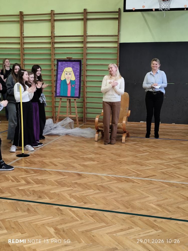 Apel miał również wyjątkowy, wzruszający moment. Samorząd Uczniowski w imieniu całej społeczności szkolnej pożegnał Panią Renatę Karasińską - nauczycielkę historii, dziękując za lata pracy, zaangażowanie oraz pasję, z jaką przekazywała wiedzę kolejnym pokoleniom uczniów. Padło wiele ciepłych słów oraz podziękowań za wsparcie, życzliwość i wkład w życie szkoły. Pożegnanie było pełne serdeczności i stanowiło ważny moment dla uczniów i nauczycieli. Pani Renia otrzymała własnoręcznie wykonany przez uczniów portret, przepiękny bukiet kwiatów oraz moc oklasków.
