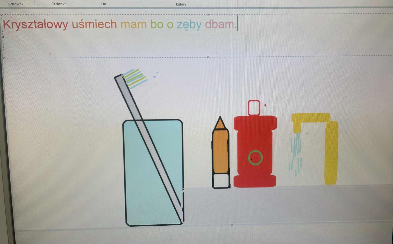 Na zajęciach z informatyki projektowały kolorowe obrazki związane z higieną jamy ustnej i przyborami do mycia zębów, rozwijając przy tym kreatywność i umiejętności komputerowe.