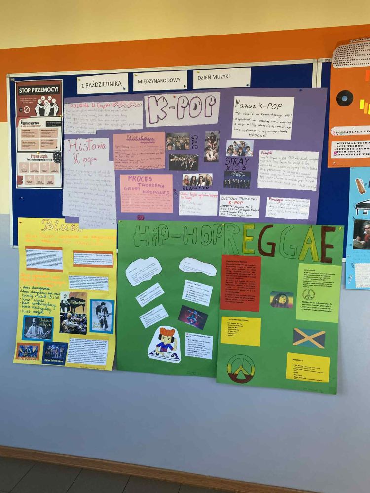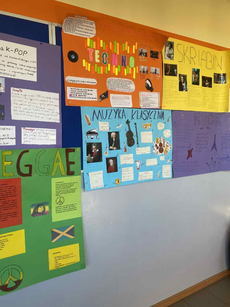 klas VIc i b przygotowali plakaty omawiające historię wybranych stylów muzycznych, z