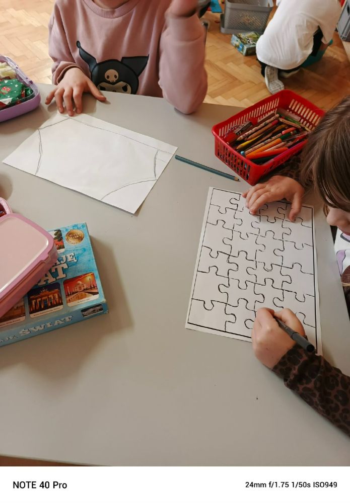 Z okazji Międzynarodowego Dnia Puzzli uczniowie brali udział zajęciach plastycznych łączących zabawę orazćwiczenia koncentracji. Dzieci malowały własne puzzlea później je wycinały, ucząc się przy tym cierpliwości oraz zręczności.