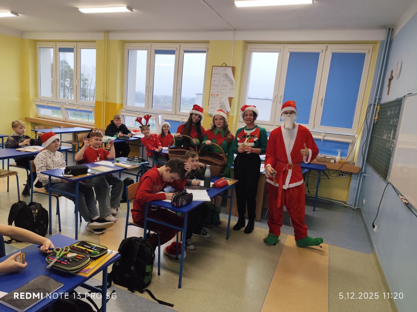 Uczniowie otrzymali drobne upominki, a w klasach panowała serdeczna i pełna ciepła atmosfera. Był to dzień pełen życzliwości, śmiechu i wspólnej zabawy — idealne rozpoczęcie przedświątecznego czasu w naszej szkole.
