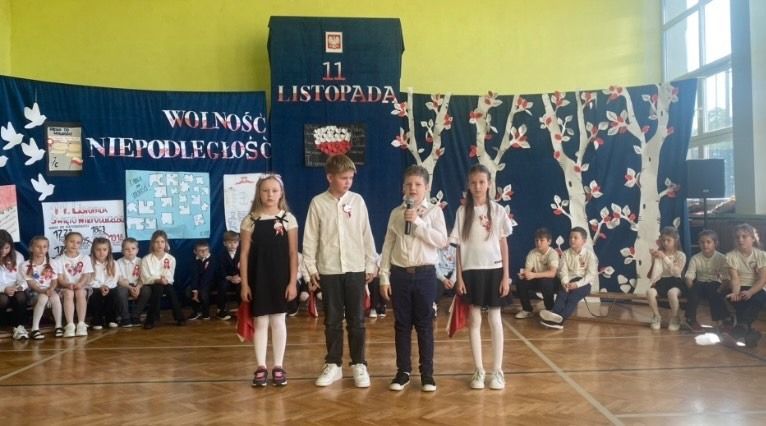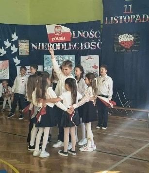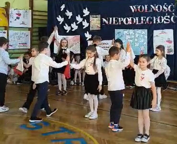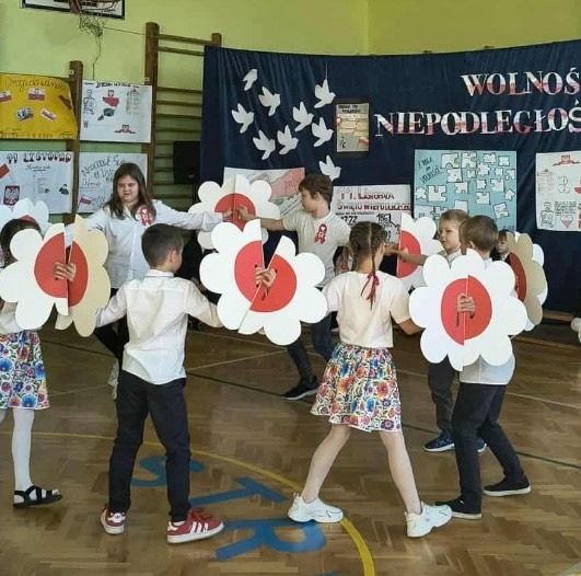 W tym roku uroczystą akademię poświęconą historii odzyskania niepodległości przez Polskę przygotowali z Wychowawczyniami uczniowie klas 3a i 3b. Młodzi artyści, w strojach galowych, z wielkim zaangażowaniem przypomnieli zebranym trudną drogę Polaków do wolności. Montaż słowno-muzyczny przybliżał atmosferę lat walki o wolność. Uczniowie recytowali wiersze, śpiewali pieśni patriotyczne oraz zaprezentowali piękny taniec biało-czerwonych kwiatów i nastrojowego walca z filmu „Noce i dnie” z wplecionymi elementami symboli narodowych. Jeden z uczniów zagrał na saksofonie „Rotę”, a wszyscy uczestnicy uroczystości odśpiewali hymn Polski - „Mazurka Dąbrowskiego”.