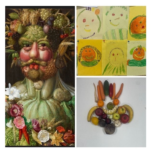 Następnie uczniowie poznali twórczość Giuseppe Arcimboldo, włoskiego malarza, znanego z niezwykłych portretów tworzonych z owoców, warzyw, kwiatów i innych elementów natury. Zainspirowani jego dziełami, uczniowie stworzyli własne kompozycje z owoców i warzyw, a następnie wykonali rysunkowe portrety w stylu artysty.