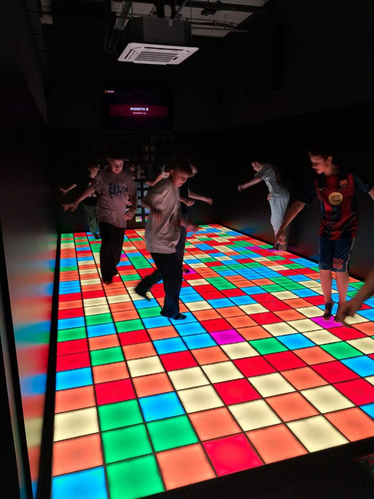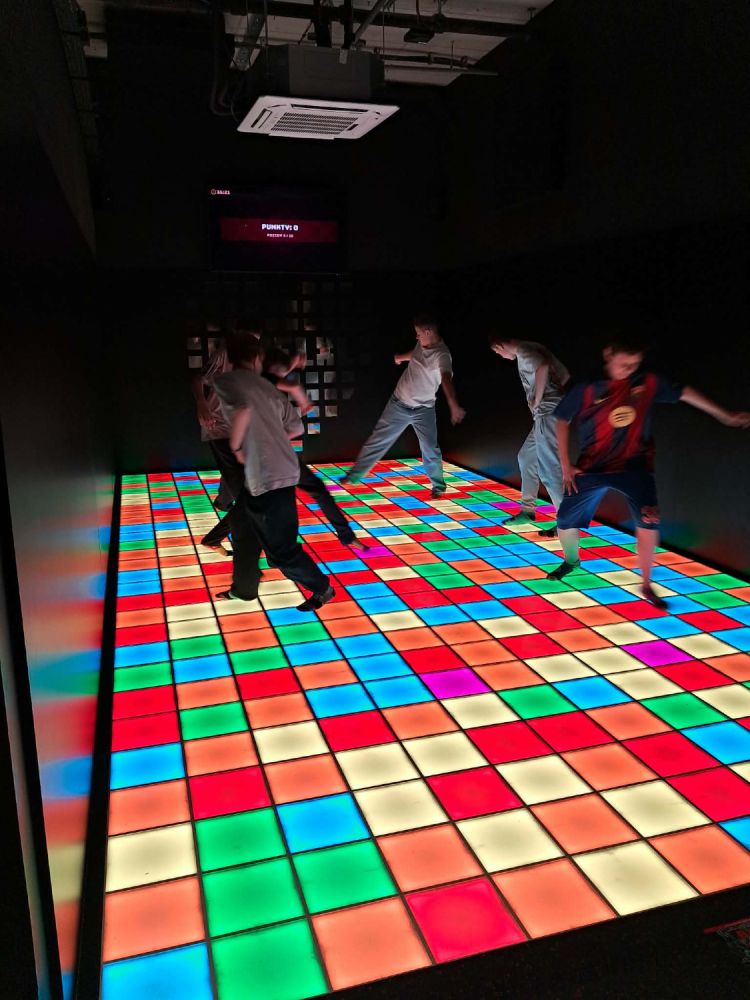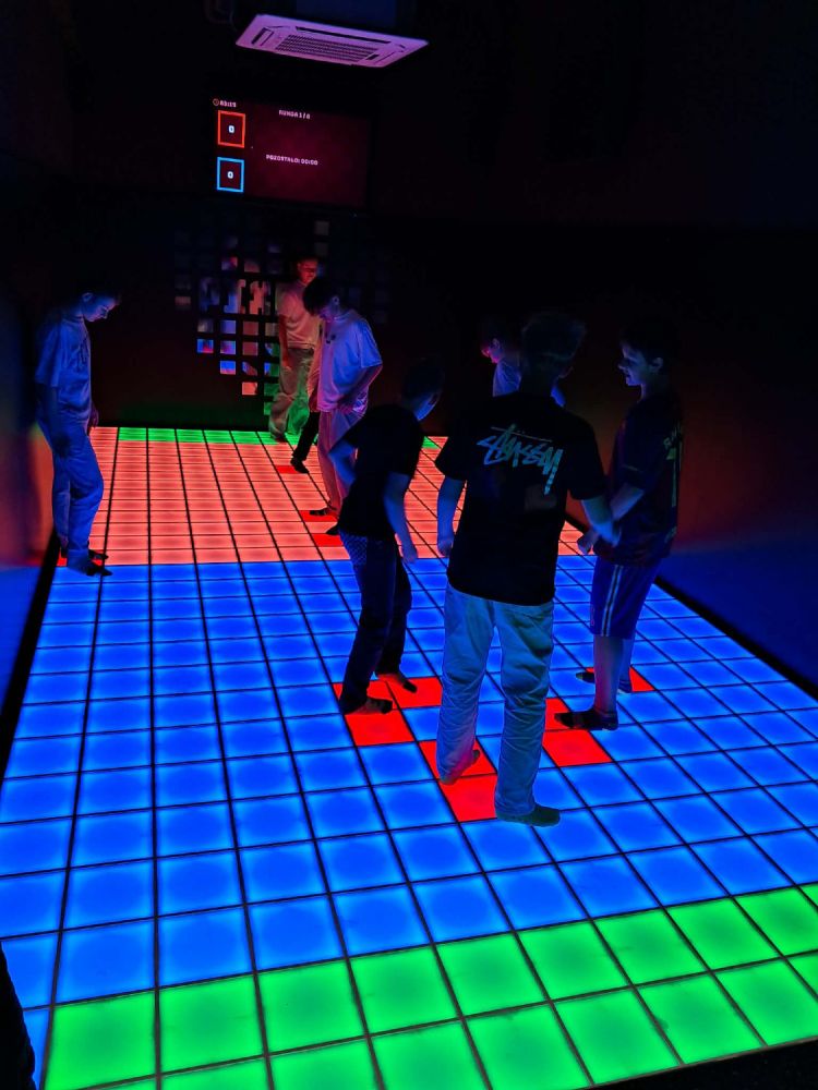 Główną atrakcją wycieczki była wizyta w PixelXL – interaktywnej przestrzeni rozrywki, która łączy ruch, światło i nowoczesne technologie. Uczniowie mieli okazję sprawdzić swoją sprawność fizyczną, refleks oraz współpracę w grupie, biorąc udział w różnorodnych grach i wyzwaniach.