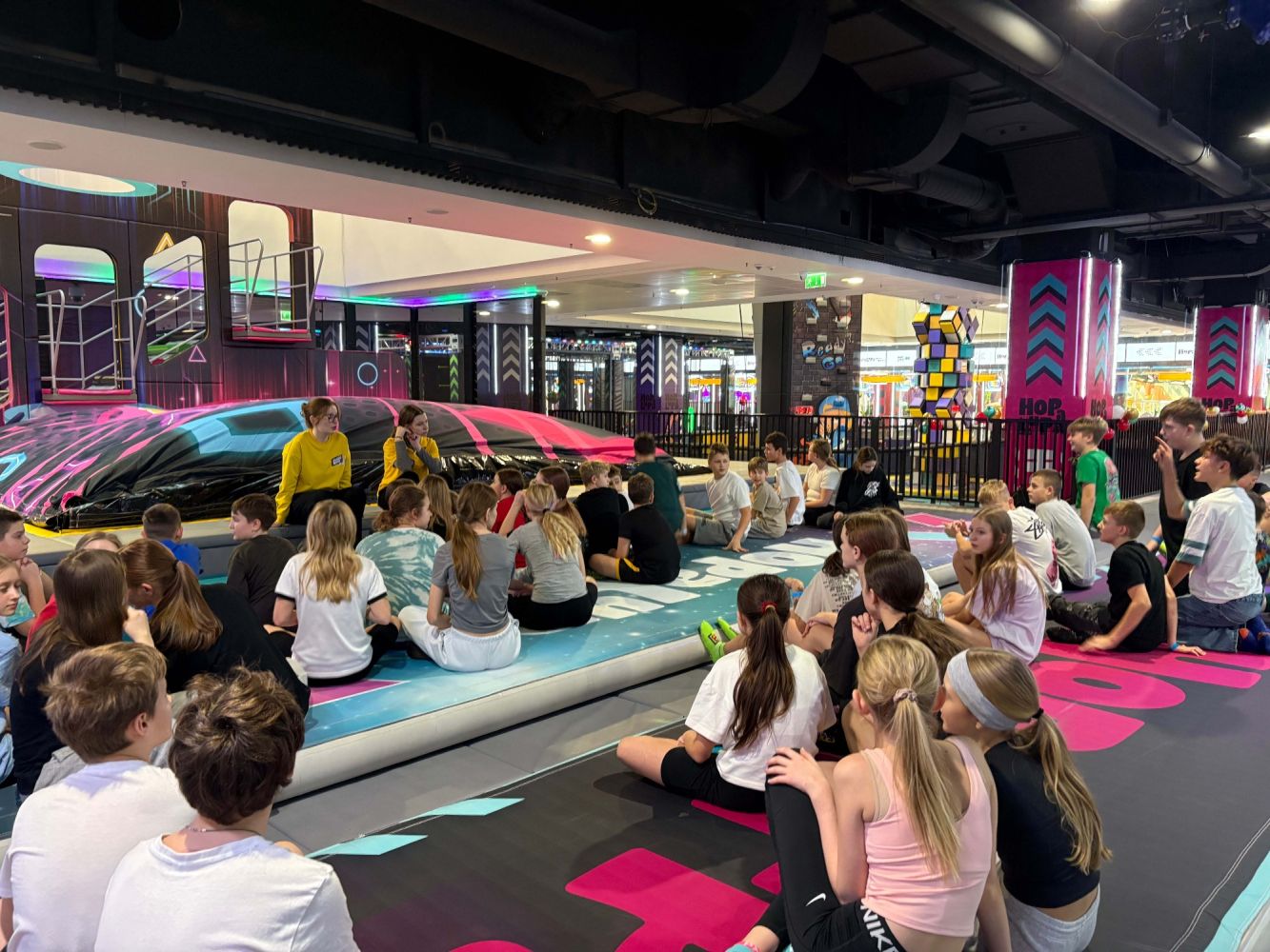 Kolejnym punktem wycieczki była wizyta w sali zabaw Hopa Lupa, gdzie uczniowie aktywnie spędzili czas, integrując się i doskonale bawiąc. Wycieczka przebiegła w miłej atmosferze i dostarczyła wszystkim wielu pozytywnych wrażeń.
