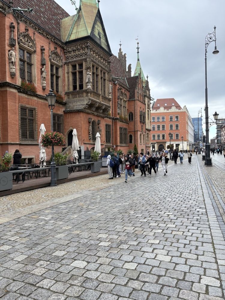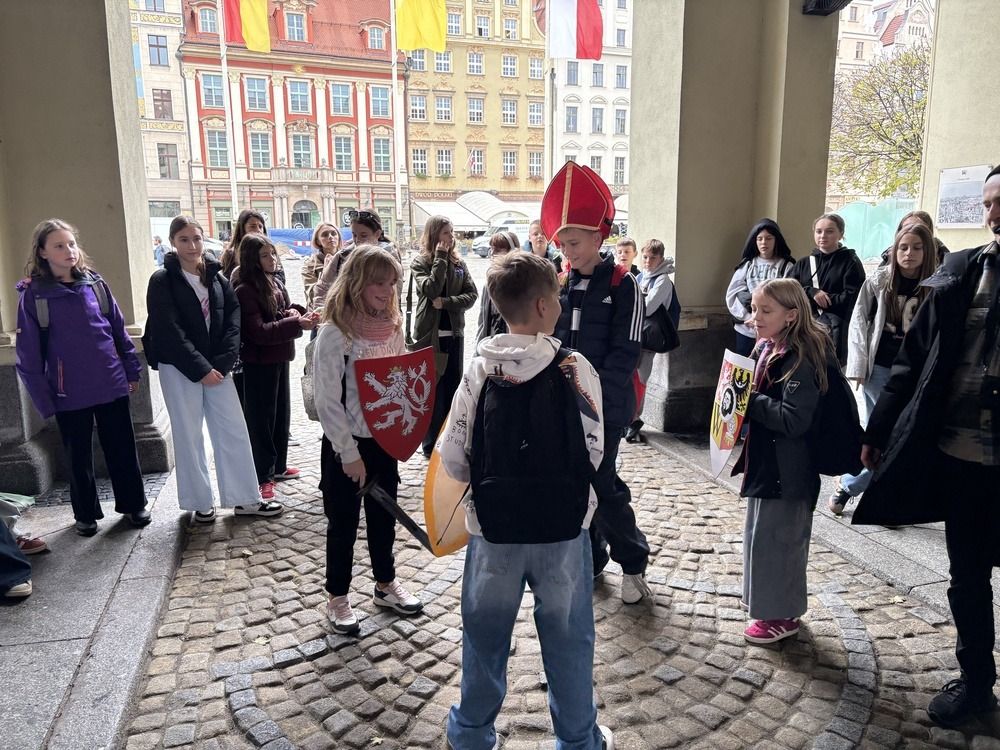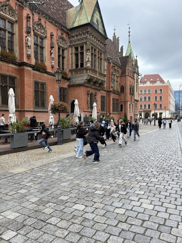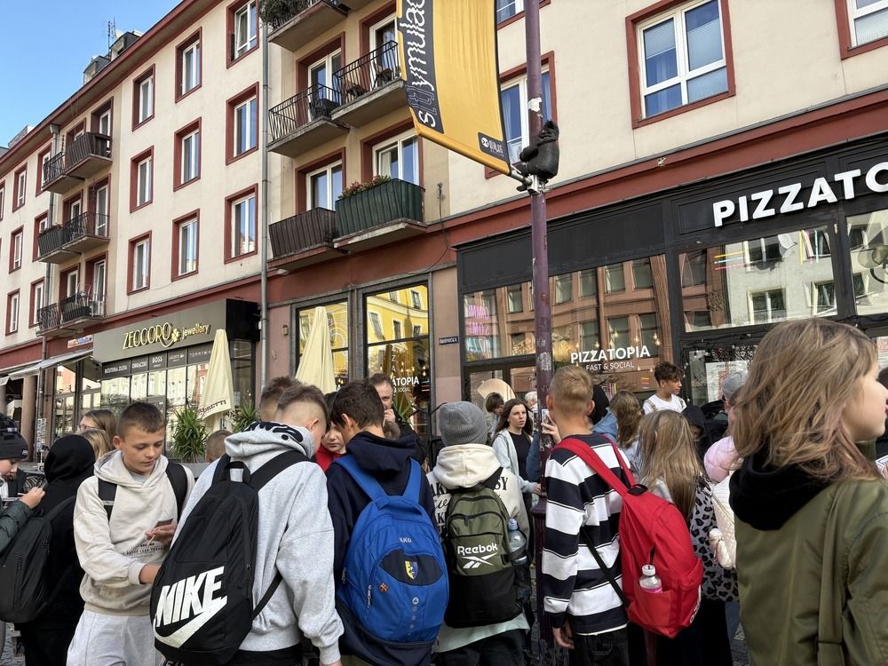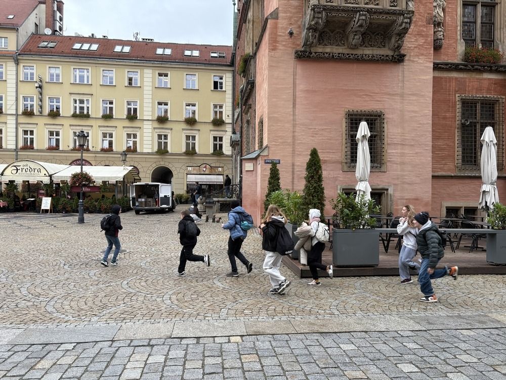 Naszą przygodę rozpoczęliśmy od niezwykłej gry miejskiej z wykorzystaniem QR kodów. Zadanie było poważne – odnaleźć zaginiony rękopis "Pana Tadeusza". Dzięki współpracy, sprytowi i wykorzystaniu smartfonów, uczniowie odkrywali kolejne wskazówki ukryte w zakątkach Wrocławia. Były zagadki, szybkie decyzje i dużo śmiechu. Na końcu udało się – złodziej został zdemaskowany, a rękopis odzyskany.