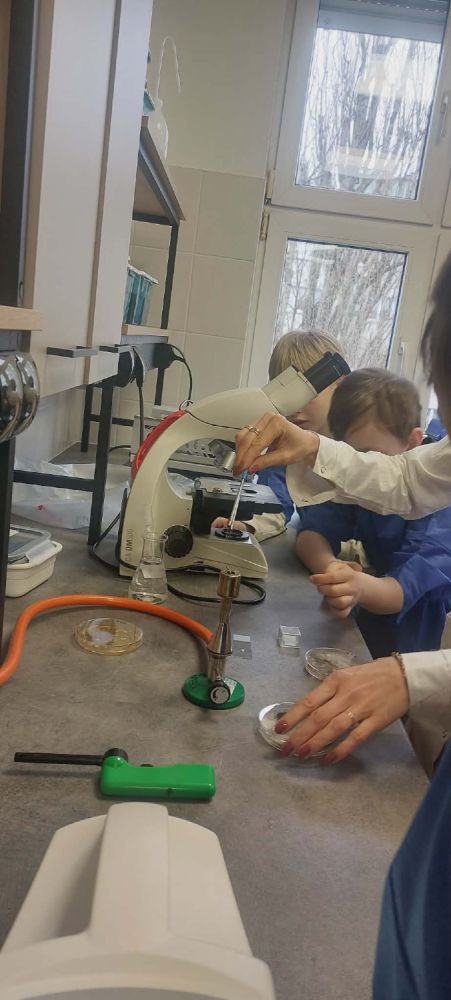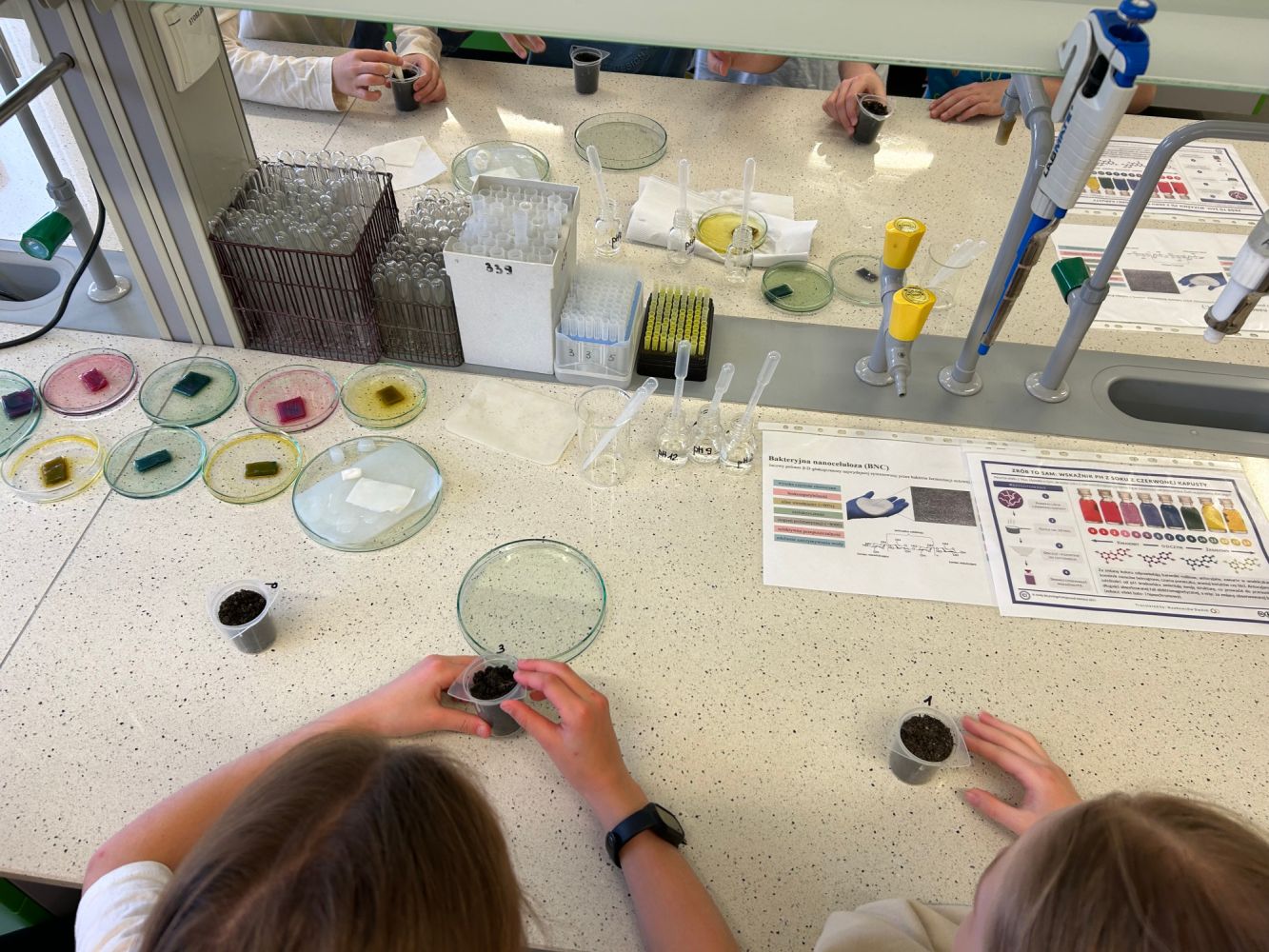 Podczas warsztatów jedna z grup zajmowała się obserwacją pleśni i bakterii