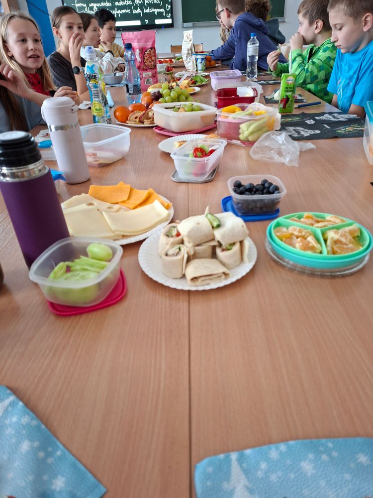 27 listopada w naszej szkole obchodziliśmy Dzień Zdrowego Jedzenia, którego głównym celem było promowanie prawidłowych nawyków żywieniowych wśród uczniów. Z tej okazji klasy 4–8 przygotowały wspólne, kolorowe i pełne wartościowych składników zdrowe śniadania.