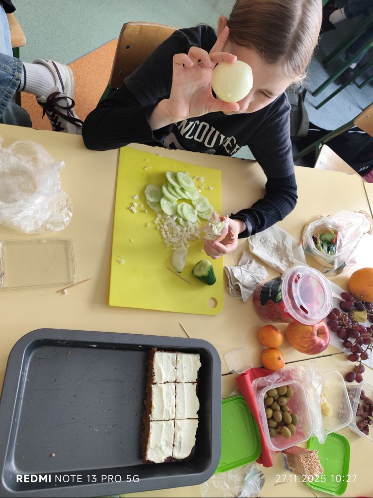 Podczas zajęć uczniowie tworzyli własne zestawy śniadaniowe, w których pojawiły się m.in.: świeże warzywa i owoce, pełnoziarniste pieczywo, jogurty naturalne, pasty warzywne, hummus, sery, a także domowe kanapki i sałatki. Nauczyciele podkreślali znaczenie regularnego jedzenia śniadania jako najważniejszego posiłku dnia.