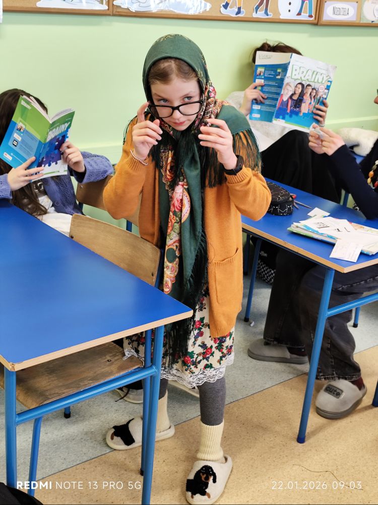 Uczniowie zadbali o kreatywne stylizacje – pojawiły się korale, krawaty, muchy, a także zabawne akcenty, takie jak kapcie i kolorowe skarpety, nawiązujące do domowego ciepła i troski, jaką obdarzają nas Babcie i Dziadkowie.