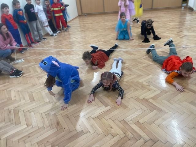 Kolorowe stroje, radosna muzyka i mnóstwo uśmiechów – tak wyglądał bal karnawałowy uczniów klas I–III. Tego dnia szkolne korytarze zamieniły się w magiczną krainę pełną księżniczek, superbohaterów, zwierząt i bajkowych postaci.