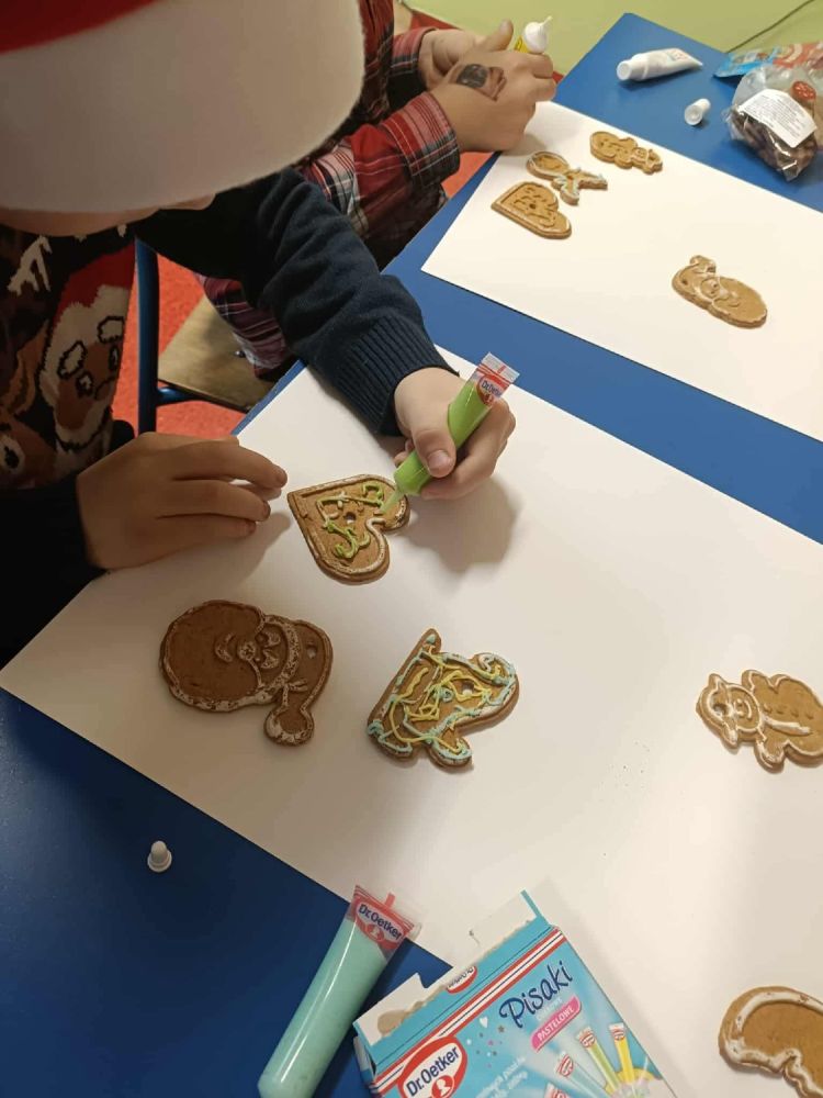5 grudnia uczniowie oddziału przedszkolnego oraz klas 1a, 1b, 1c i 2a, 2c spędzili radosne Mikołajki na słodko i kreatywnie! Dzieci ozdabiały pierniczki, które wkrótce zostaną rozdane mieszkańcom Strykowa. Nie zabrakło też okazji, by spróbować własnych wypieków – pierniczki były przepyszne!