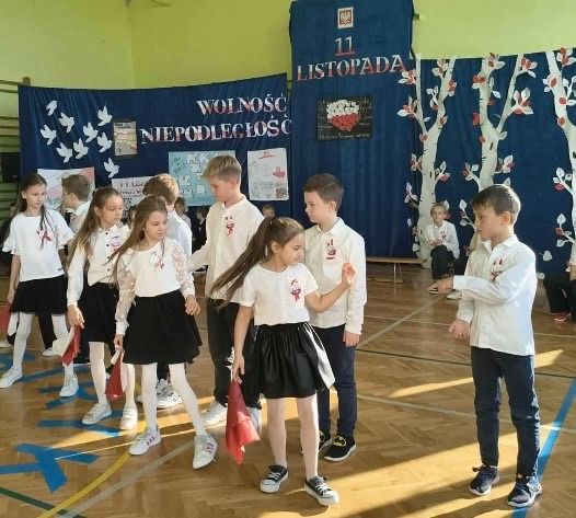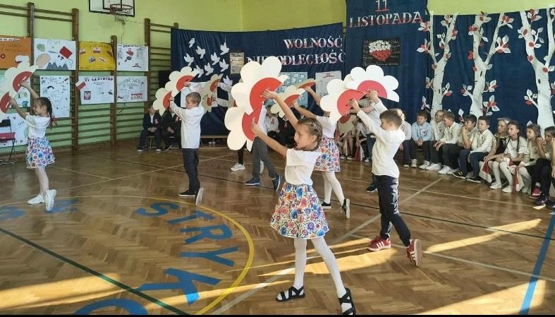 W tym roku uroczystą akademię poświęconą historii odzyskania niepodległości przez Polskę przygotowali z Wychowawczyniami uczniowie klas 3a i 3b. Młodzi artyści, w strojach galowych, z wielkim zaangażowaniem przypomnieli zebranym trudną drogę Polaków do wolności. Montaż słowno-muzyczny przybliżał atmosferę lat walki o wolność. Uczniowie recytowali wiersze, śpiewali pieśni patriotyczne oraz zaprezentowali piękny taniec biało-czerwonych kwiatów i nastrojowego walca z filmu „Noce i dnie” z wplecionymi elementami symboli narodowych. Jeden z uczniów zagrał na saksofonie „Rotę”, a wszyscy uczestnicy uroczystości odśpiewali hymn Polski - „Mazurka Dąbrowskiego”.