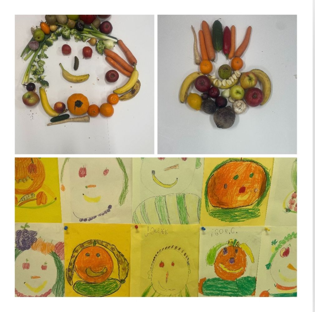 Następnie uczniowie poznali twórczość Giuseppe Arcimboldo, włoskiego malarza, znanego z niezwykłych portretów tworzonych z owoców, warzyw, kwiatów i innych elementów natury. Zainspirowani jego dziełami, uczniowie stworzyli własne kompozycje z owoców i warzyw, a następnie wykonali rysunkowe portrety w stylu artysty.