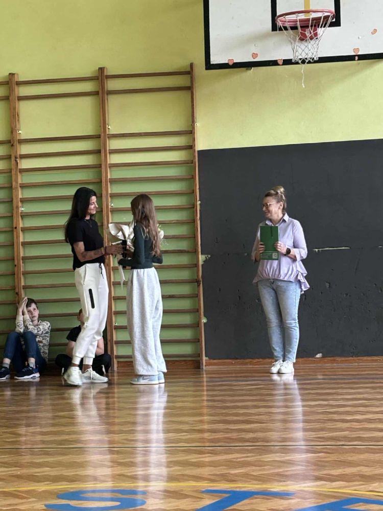 Podczas apelu uroczyście pożegnano dotychczasową opiekunkę Samorządu, panią Aleksandrę Królikowską. Została ona obdarowana pięknym bukietem kwiatów i pożegnana wzruszającymi słowami wdzięczności za zaangażowanie, życzliwość i troskę, które przez lata okazywała uczniom.