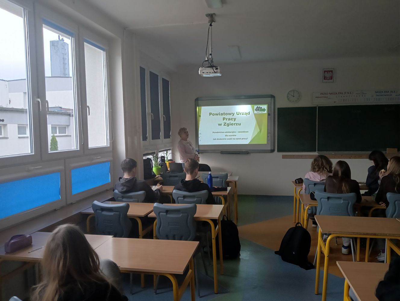 Prelekcja pracownika Powiatowego Urzędu Pracy Pani Elżbiety Kurek.Uczniowie klas ósmych poznali mechanizmy rynku pracy oraz ważne informacje potrzebne do planowania ścieżki edukacyjno - zawodowej.
