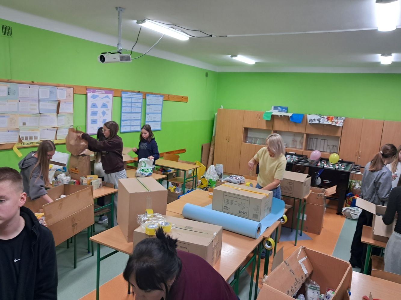 Dzięki ogromnemu zaangażowaniu uczniów, rodziców, nauczycieli oraz pracowników szkoły udało się przygotować paczki zawierające najpotrzebniejsze produkty – żywność, środki czystości, pościel, ręczniki, koce oraz drobne upominki.