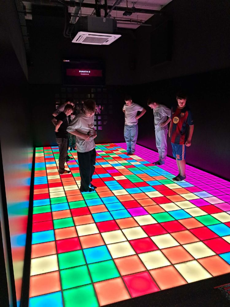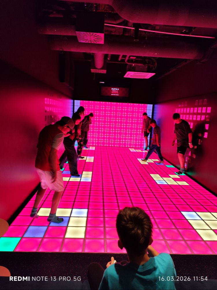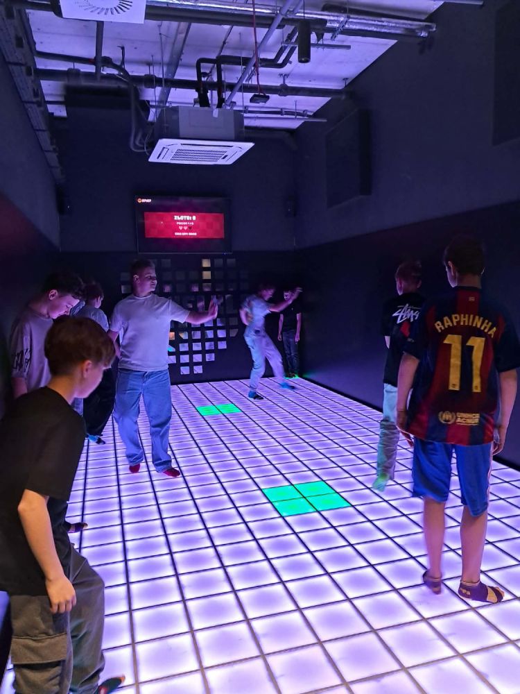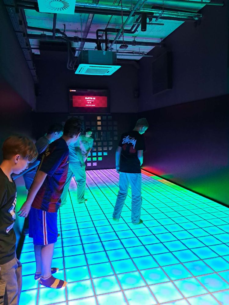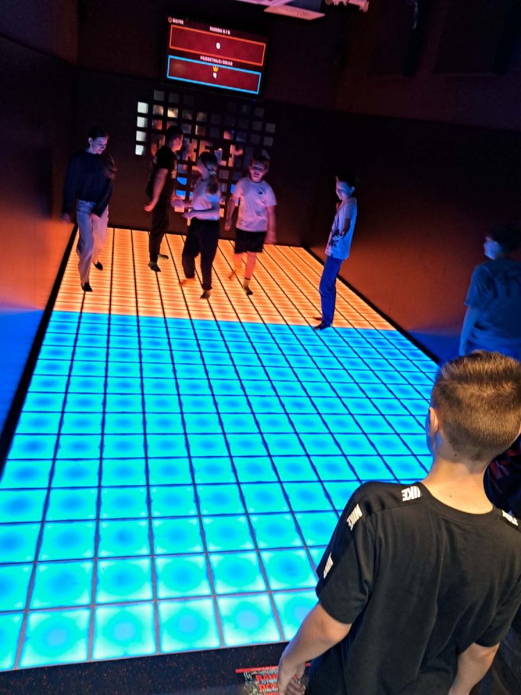 Główną atrakcją wycieczki była wizyta w PixelXL – interaktywnej przestrzeni rozrywki, która łączy ruch, światło i nowoczesne technologie. Uczniowie mieli okazję sprawdzić swoją sprawność fizyczną, refleks oraz współpracę w grupie, biorąc udział w różnorodnych grach i wyzwaniach.