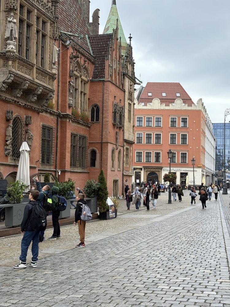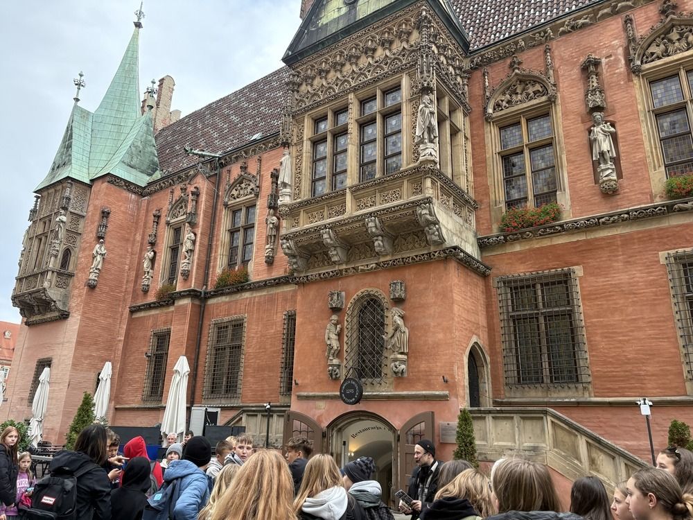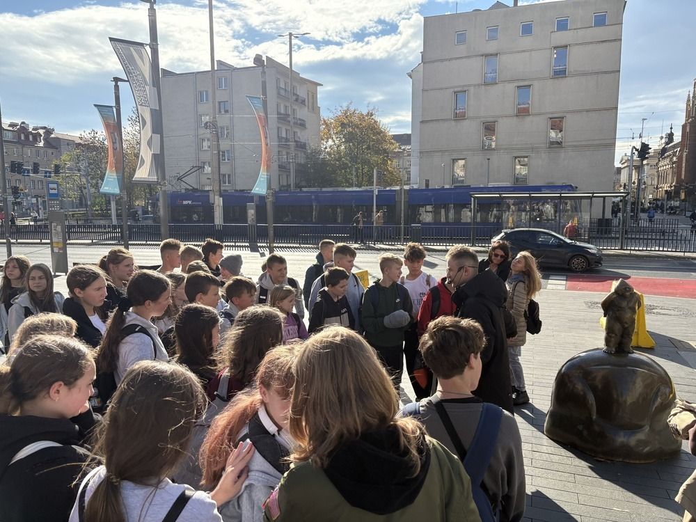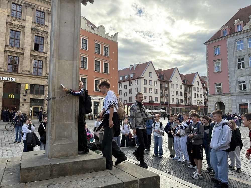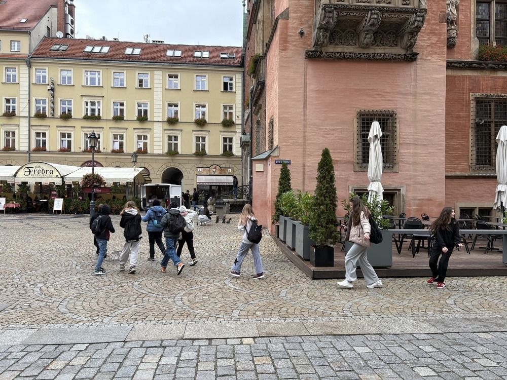 Naszą przygodę rozpoczęliśmy od niezwykłej gry miejskiej z wykorzystaniem QR kodów. Zadanie było poważne – odnaleźć zaginiony rękopis "Pana Tadeusza". Dzięki współpracy, sprytowi i wykorzystaniu smartfonów, uczniowie odkrywali kolejne wskazówki ukryte w zakątkach Wrocławia. Były zagadki, szybkie decyzje i dużo śmiechu. Na końcu udało się – złodziej został zdemaskowany, a rękopis odzyskany.