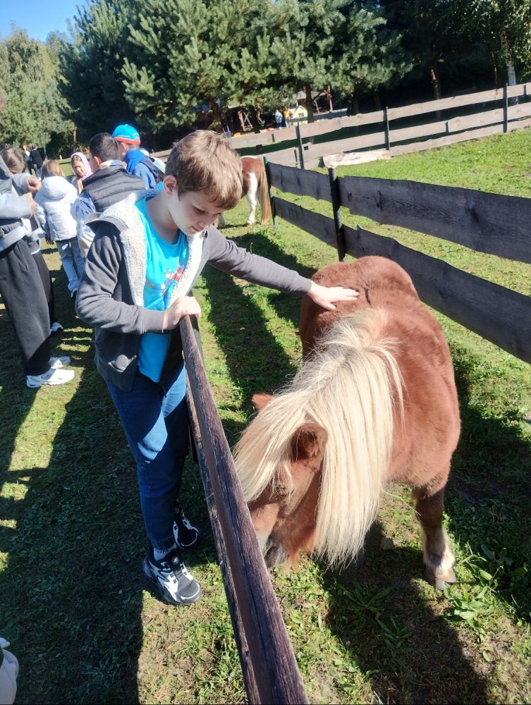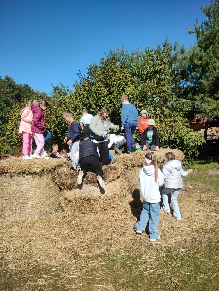 W dniu 24 września uczniowie klas trzecich wraz z opiekunkami odwiedzili zagrodę edukacyjną „Michałówka” w Woli Czarnyskiej. To miejsce, w którym wiedza, zabawa i natura łączą się w jedno spójne doświadczenie. Tutaj każdy mógł się poczuć „bliżej natury” – wspólne zabawy na torze przeszkód i placu zabaw wśród zieleni, przejażdżka po rozległym terenie na przyczepie dopiętej do ciągnika oraz liczne zwierzęta w mini zoo. Dzieci z zaciekawieniem słuchały informacji i oglądały kuce oraz alpaki. Mogły też obejrzeć rzadko spotykane gatunki ptactwa domowego.