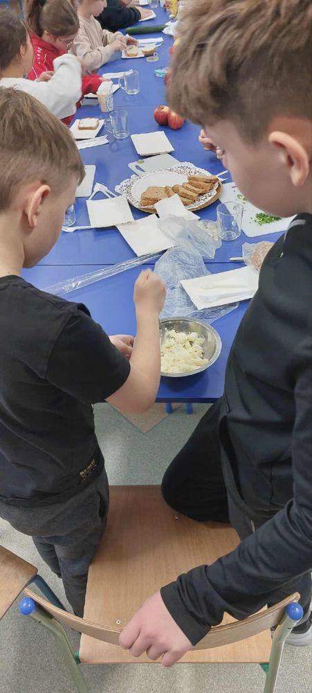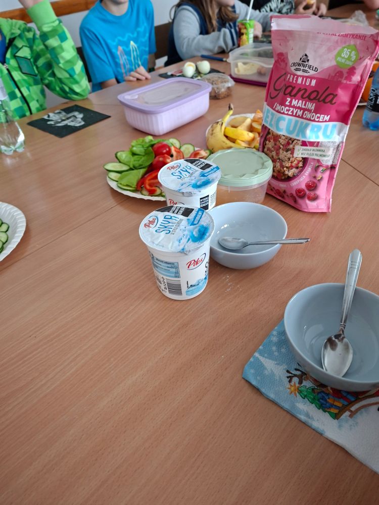 Podczas zajęć uczniowie tworzyli własne zestawy śniadaniowe, w których pojawiły się m.in.: świeże warzywa i owoce, pełnoziarniste pieczywo, jogurty naturalne, pasty warzywne, hummus, sery, a także domowe kanapki i sałatki. Nauczyciele podkreślali znaczenie regularnego jedzenia śniadania jako najważniejszego posiłku dnia.