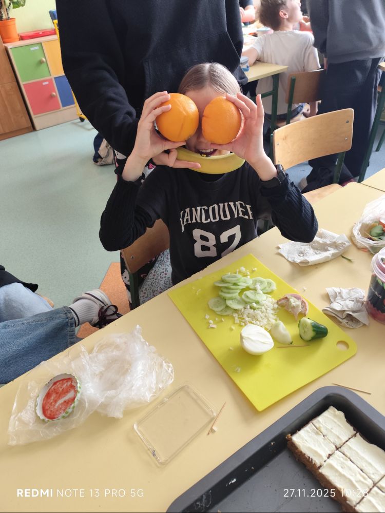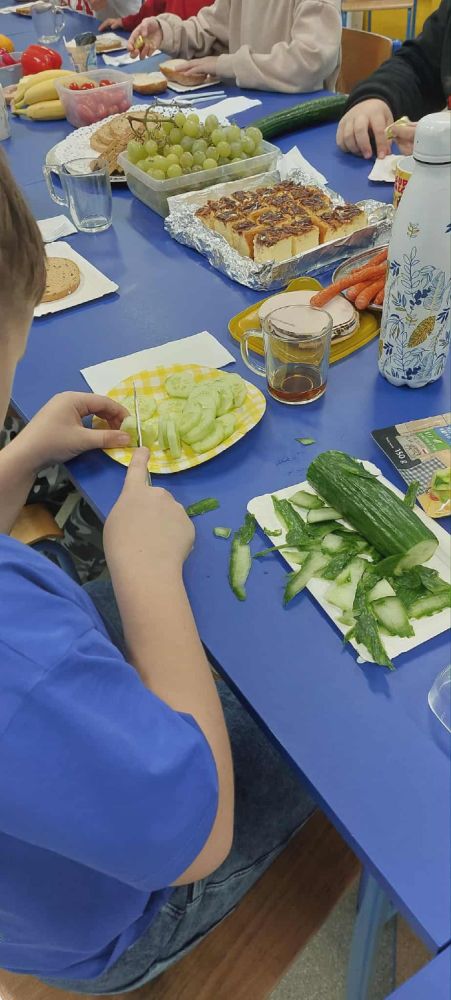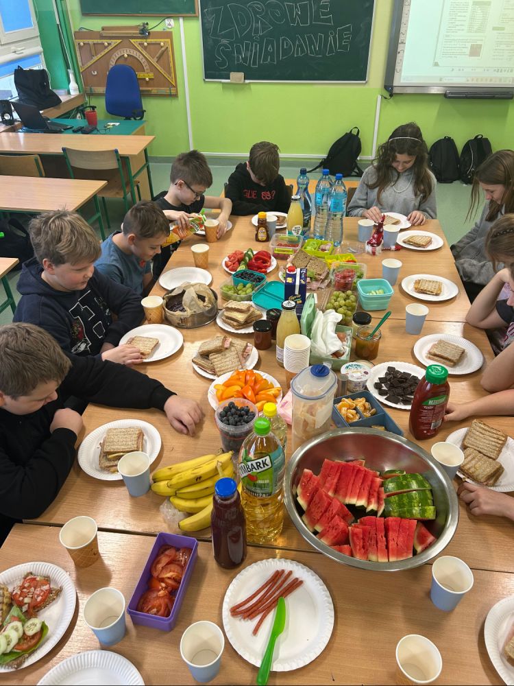 27 listopada w naszej szkole obchodziliśmy Dzień Zdrowego Jedzenia, którego głównym celem było promowanie prawidłowych nawyków żywieniowych wśród uczniów. Z tej okazji klasy 4–8 przygotowały wspólne, kolorowe i pełne wartościowych składników zdrowe śniadania.